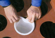 ②布袋垂直懸空在多孔板下面。
