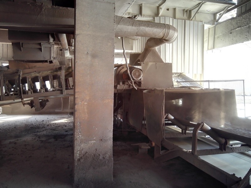4、二燒配-2#皮帶處用于輸送混料粉,入料皮帶寬帶為1000mm,帶速1.6m/s。二燒配-1#皮帶機(jī)頭部轉(zhuǎn)運(yùn)高度落差3米。