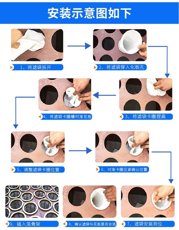 布袋底部采用加強(qiáng)環(huán)布并用一層包邊縫制,無毛邊裸露,濾袋合理剪裁,盡量減少拼縫。拼接處,重疊搭接寬度小于10mm,以提高布袋袋底強(qiáng)度和抗沖刷能力。同時(shí)濾袋底部距離進(jìn)風(fēng)口的距離及設(shè)備進(jìn)風(fēng)導(dǎo)流系統(tǒng)的設(shè)計(jì)與濾料的使用壽命有著級(jí)大的關(guān)系。我公司設(shè)計(jì)的設(shè)備充分考慮到這些內(nèi)容,保正除塵器正常運(yùn)行。