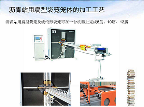 瀝青站用扁型袋籠及波浪形袋籠可在一臺(tái)機(jī)器上完成8筋、10筋、12筋.
