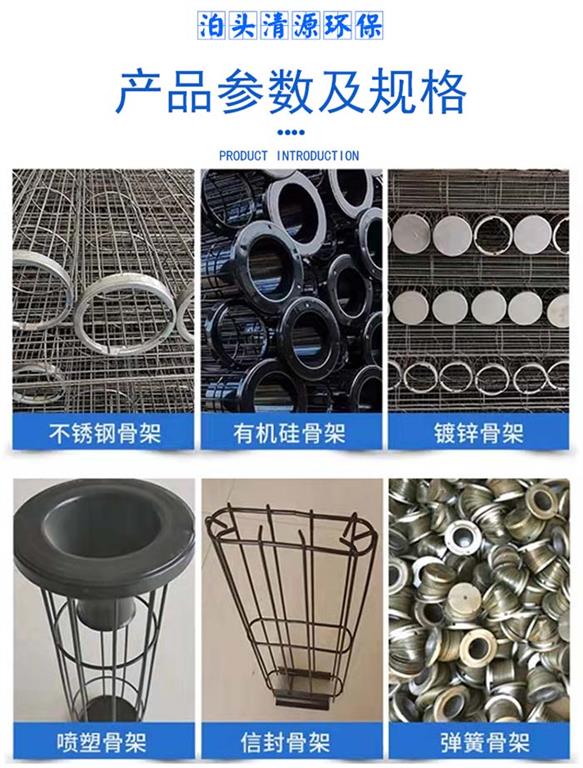 清源環(huán)保公司可以提供各種型號(hào),圓骨架、扁骨架、彈簧骨架、多節(jié)異型骨架,材質(zhì)有_、耐酸堿、碳鋼、鍍鋅、電鍍、不銹鋼等。另備有拉伸文氏管,可根據(jù)用戶(hù)要求焊接在籠口上,文氏管、短管、吊口、布袋喉箍等配件,并可按客戶(hù)要求制做非標(biāo)準(zhǔn)的籠架。