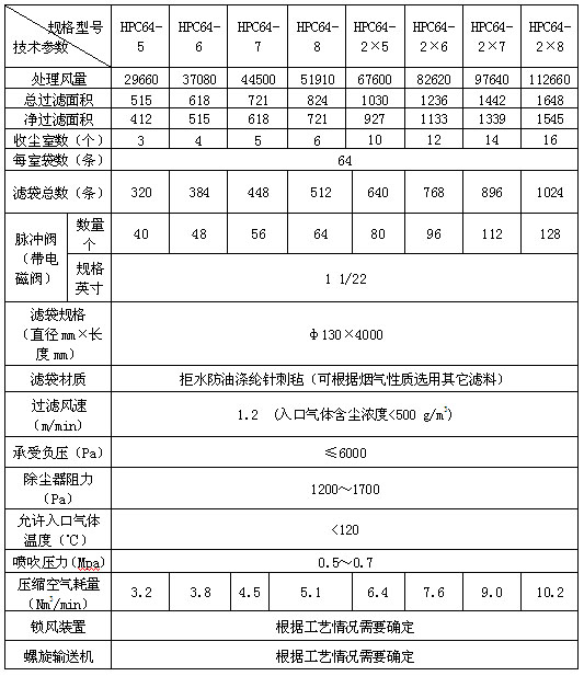 2、烘干機布袋除塵器技術(shù)參數(shù):