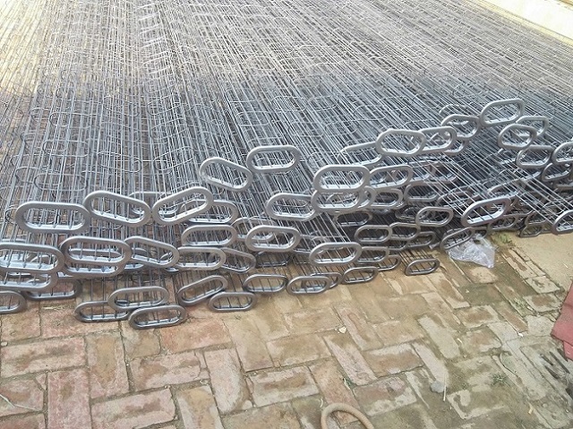 籠式框架由支撐環(huán)和縱筋組成,支撐環(huán)之間的距離應(yīng)在150~200mm范圍,可在框架長度內(nèi)均勻分布,也可在框架二端按排分布后的余數(shù)。支撐環(huán)線材的直徑應(yīng)大于縱筋線材的直徑。