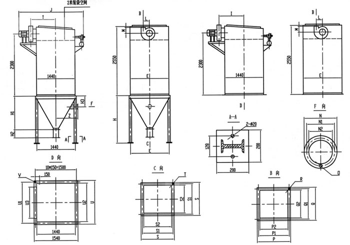 三、HMC脈沖單機(jī)袋式除塵器外形圖