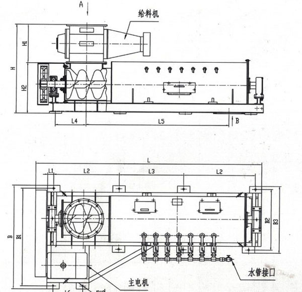 雙軸粉塵加濕機(jī)具有處理量大、結(jié)構(gòu)緊湊、 、穩(wěn)定可靠、維修簡(jiǎn)單等特點(diǎn)。除塵器處理回收的粉塵經(jīng)過(guò)下料卸灰閥進(jìn)入SJ雙軸粉塵加濕機(jī)的入料斗內(nèi),由卸灰旋轉(zhuǎn)葉輪將灰塵送入機(jī)體內(nèi)的螺旋輸送槳葉上,經(jīng)葉輪推入加濕主筒,在攪攔機(jī)均勻的拌料下,水噴淋均勻注入料內(nèi),在勻速攪拌的作用下,使粉塵加濕,加濕后的粉塵在多柱螺旋線(xiàn)性的推力作用下,從出料口緩緩送出,卸入機(jī)體外的粉塵運(yùn)送裝置。